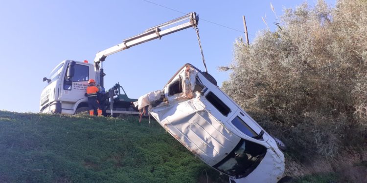 Una furgoneta Opel Combo se ha salido de la vía y ha caído por un desnivel de aproximadamente unos 8 metros de altura hasta volcar en el fondo. Los ocupantes han resultado heridos leves.