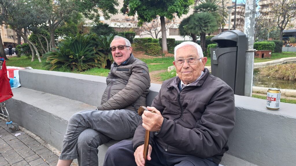 A pocos metros, encontramos a otro grupo de hombres. Prácticamente, no hay mujeres en estos corrillos de jubilados. A diferencia del grupo anterior, estos hombres son nacidos en la isla y se expresan en ibicenco. El tema favorito también es hacer inventario de los achaques, y todo ellos han llegado a una conclusión: “Para la edad que tenemos, no estamos tan mal”, presume uno de ellos. Están contentos porque ya han cobrado la paga y el 24 de diciembre recibirán otra paga extra: “¡El 24 nos dan la seguna! ¡Así que se celebra bien la Nochebuena!”.