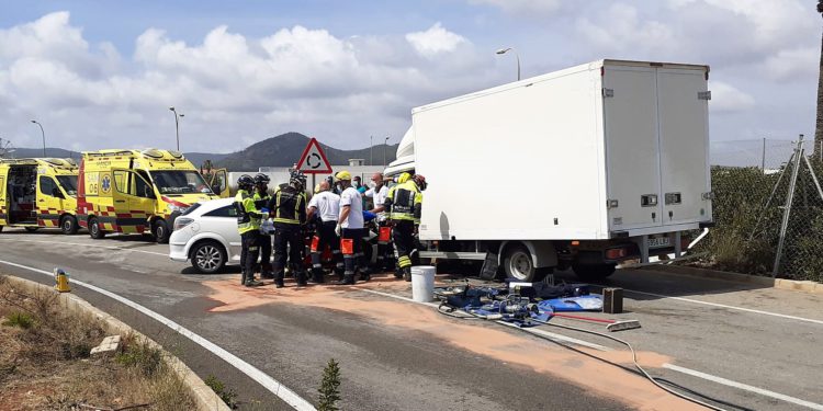 El conductor de un turismo ha permanecido atrapado en el interior de su vehículo durante casi una hora antes de poder ser excarcelado por los bomberos -que desde que han recibido el aviso han tardado siete minutos en llegar al lugar del suceso- y asistido por los servicios sanitarios después de chocar contra un camión en Ibiza. El accidente ha tenido lugar sobre las tres y media de la tarde en la carretera que une Sant Jordi y Platja d’en Bossa por la zona del hipódromo.