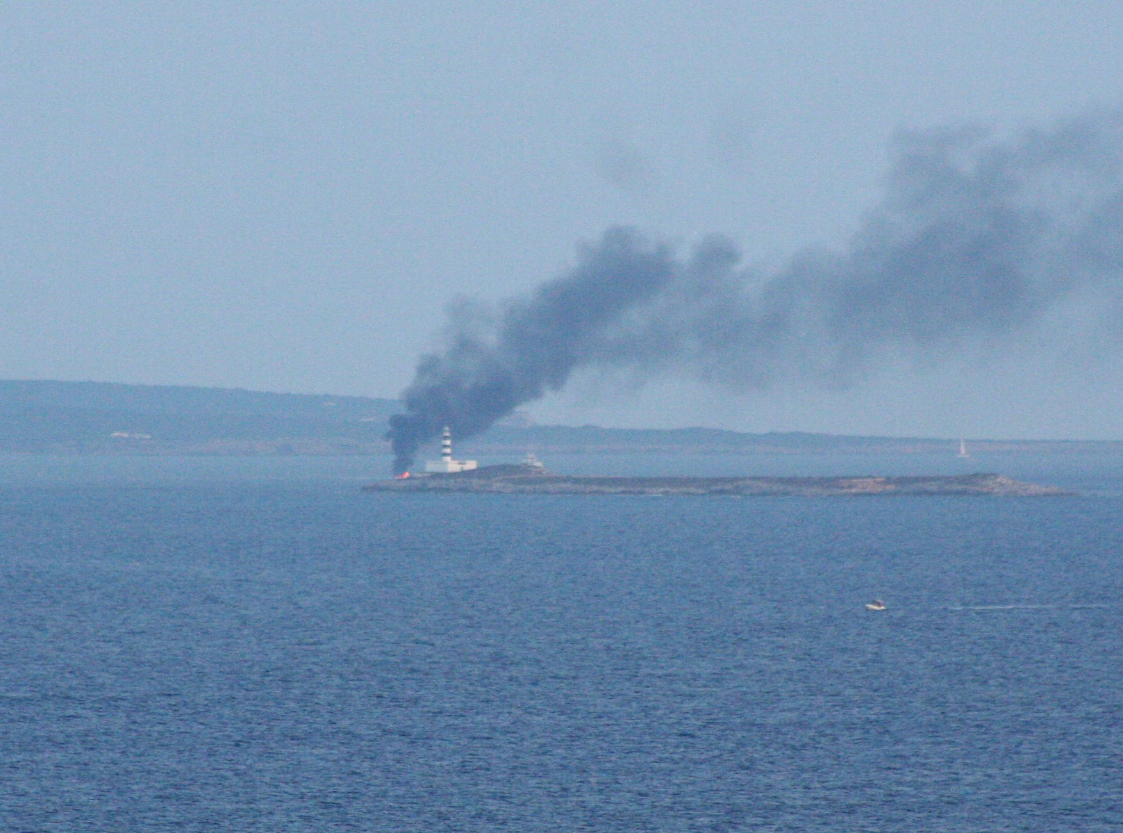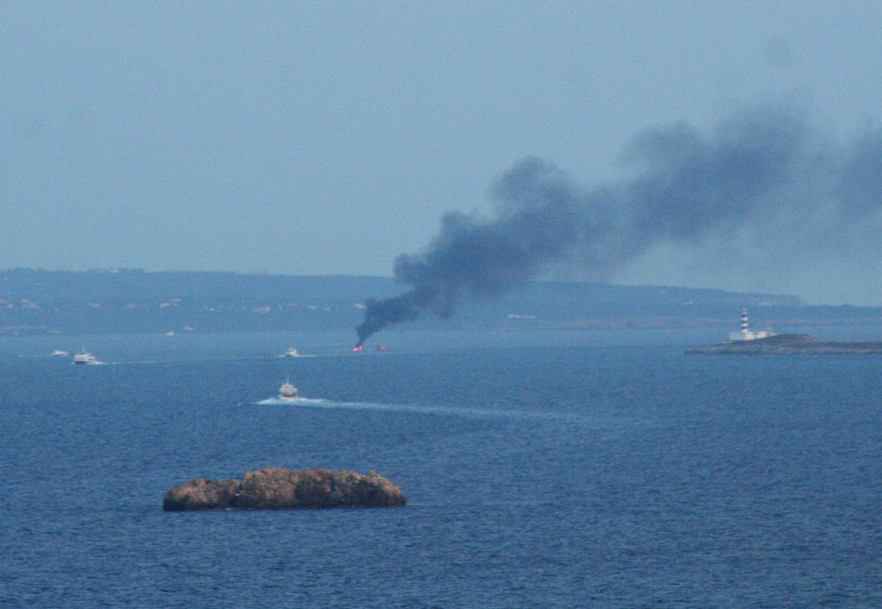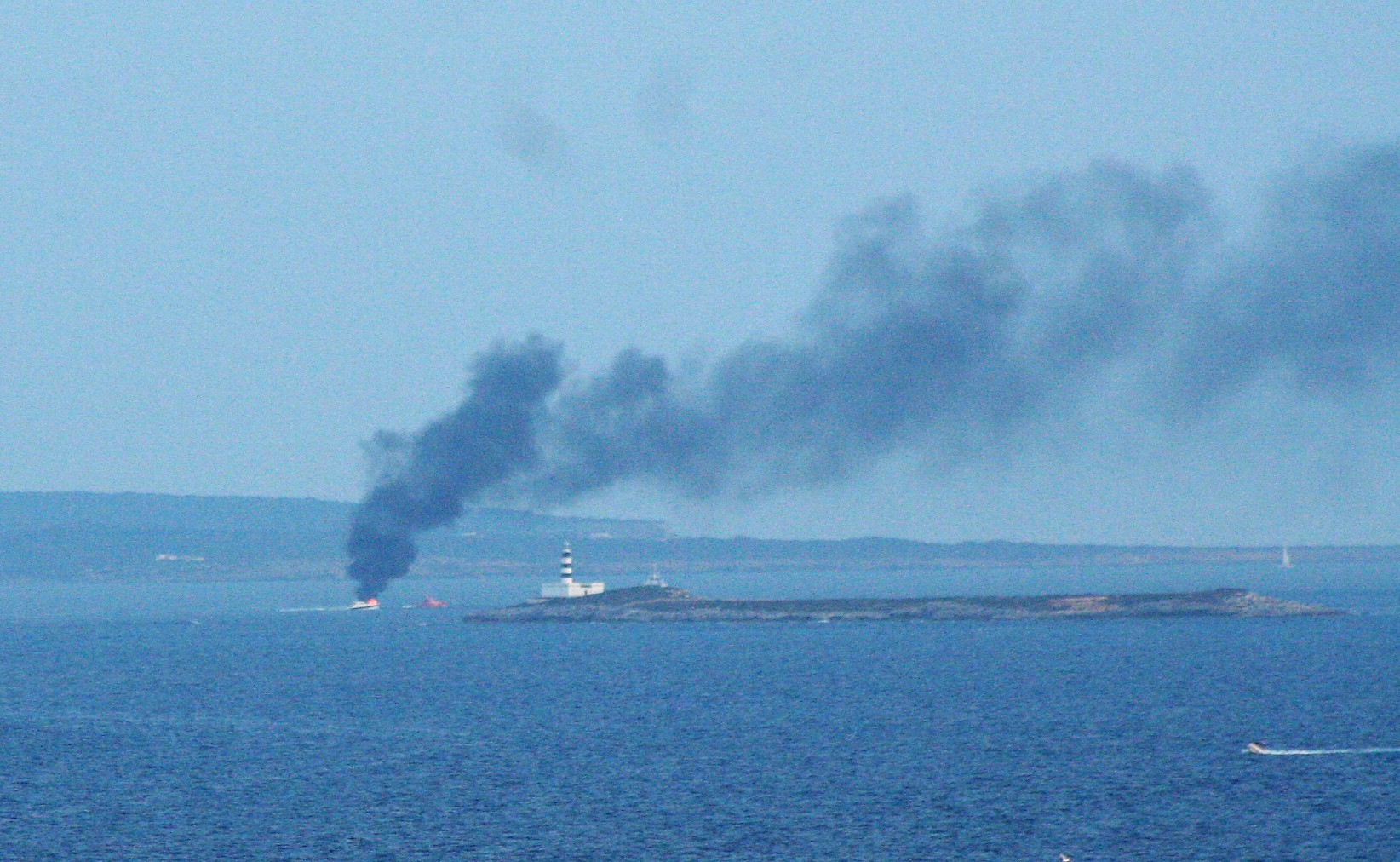 @Noudiari/ Una lancha se ha incendiado poco antes de las nueve de la noche a la altura de Es Freus, según han confirmado fuentes de Salvamento Marítimo.