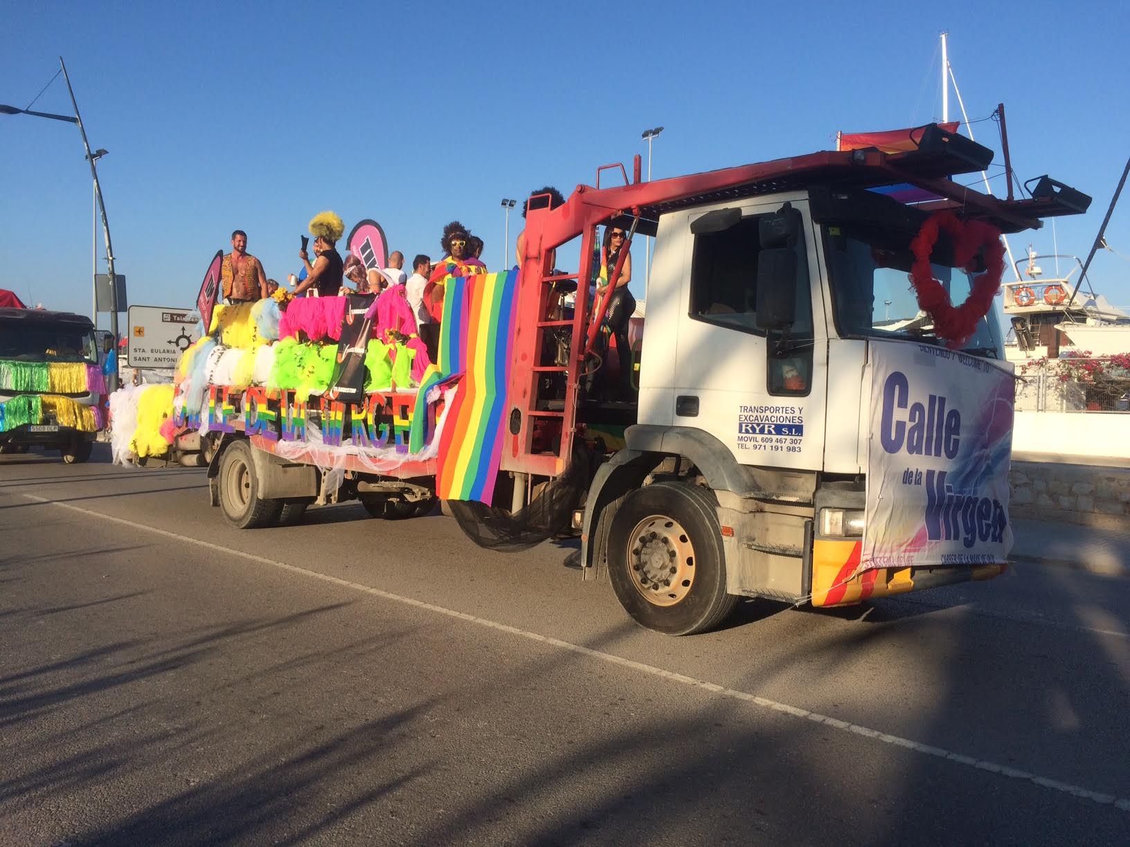 El centenar de participantes han discurrido por la Avinguda de Santa Eulària para finalizar en el puerto de Vila, junto a la estatua del pescador. Aunque el primer tramo, la marcha ha estado un tanto desangelada- a pesar de la música atronadora que salía de los vehículos-, la animación ha ido in crescendo así como se aproximaban a la entrada del municipio de Vila, donde eran recibidos por numerosos residentes y turistas curiosos, que no han dudado en aplaudir, silbar y bailar.