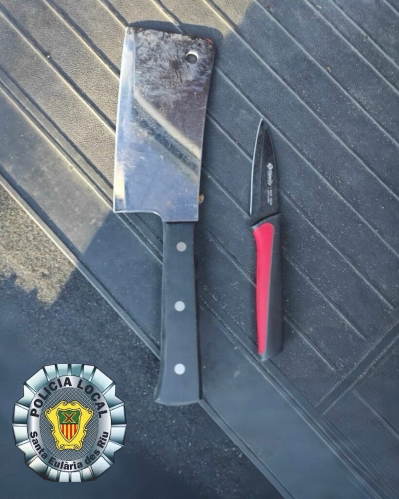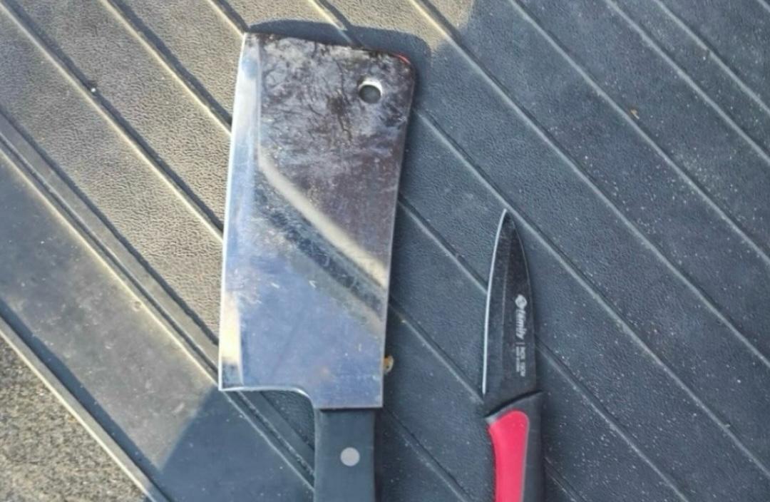 Durante el operativo, se incautó un segundo cuchillo tipo carnicero de grandes dimensiones.