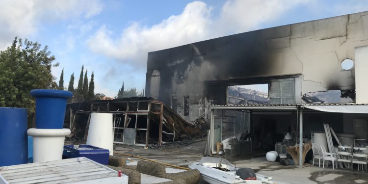 También se puede ver un cartel de Powerboats Servicios Náuticos, lo que explicaría la presencia de embarcaciones, motores y materiales inflamables que han avivado las llamas como pinturas, disolventes o baterías.