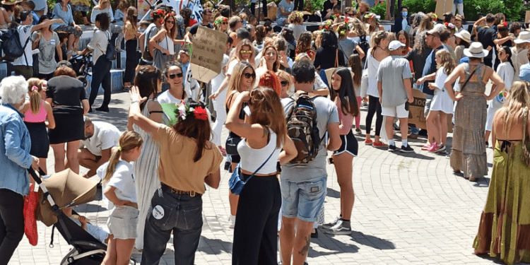 Unas 150 personas, en su mayoría extranjeros, ingleses y holandeses, pero también españoles, se han concentrado este mediodía en el Parque de la Paz de Ibiza para reclamar «libertad» y el fin de las restricciones sanitarias impuestas por el Gobierno debido a la pandemia del coronavirus así como el uso de medidas de protección ante los contagios.