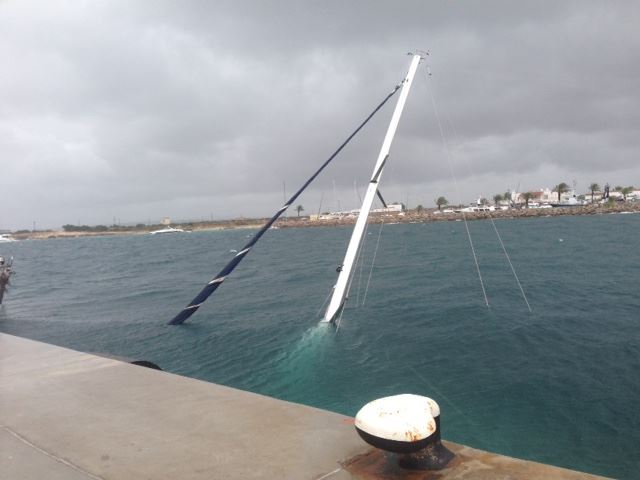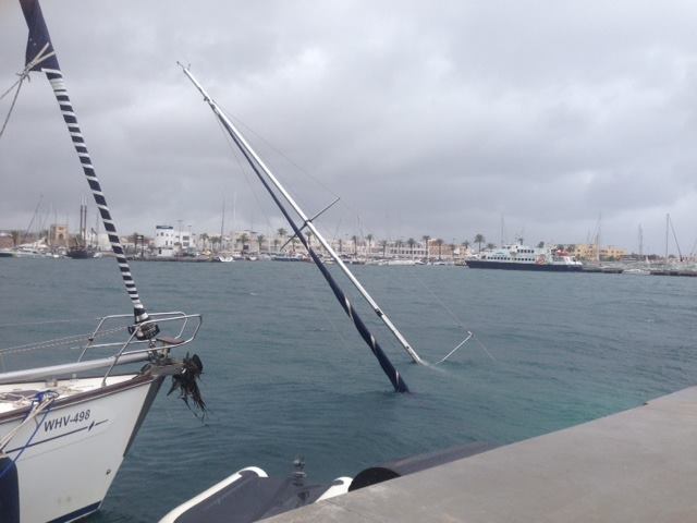 La fuerte tormenta de las últimas horas había obligado a un velero a refugiarse en el puerto de la Savina y, una vez amarrado en el muelle comercial, la embarcación se había hundido, dejando inoperativo el muelle donde atracan los buques de mercancía.