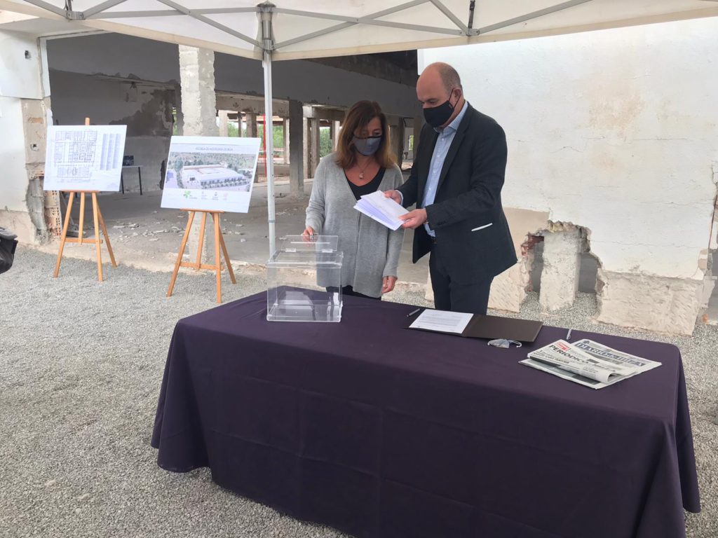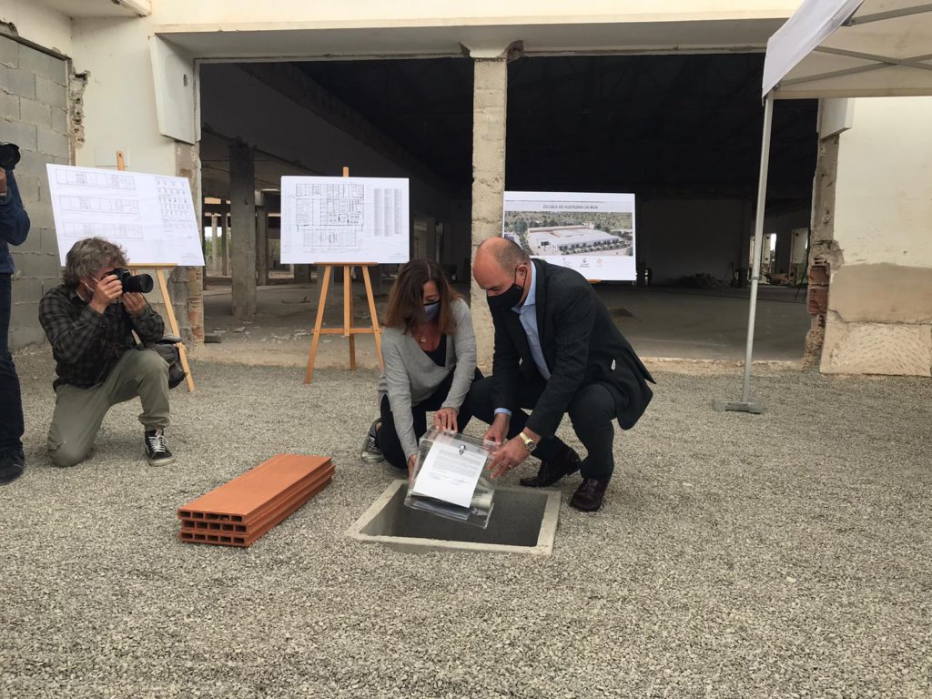 NouDiari / La presidenta del Govern, Francina Armengol, y el presidente del Consell, Vicent Marí, han colocado hoy en Ibiza la primera piedra de las obras de la nueva Escuela de Hostelería, ubicada en Sa Coma, que tienen un plazo de ejecución de 20 meses.