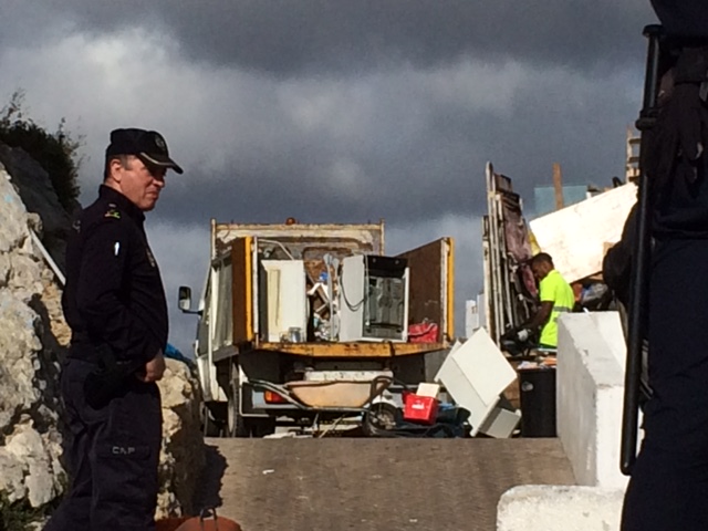 A lo largo de la mañana se han tenido que pedir refuerzos de la empresa de limpieza Cespa. En total fueron necesarios cuatro camiones para retirar las pertenencias que no se llevaron las familias desalojadas.