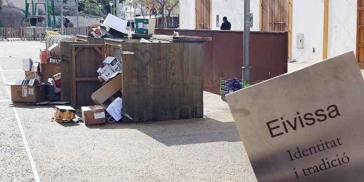 Vila recibe a los primeros turistas de Semana Santa con el casco histórico de la ciudad hecho un estercolero, lleno de basura y plagado de obras municipales, como la reforma de la plaza de sa Font, en la calle de las Farmacias, o la de sa Peixateria, acotada por una gran valla metálica que clausura o delimita a la mínima expresión el paso y cuya remodelación conlleva el cierre provisional de uno de los pocos aparcamientos que existen en el barrio.