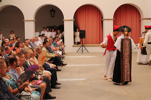 Mientras, dentro del claustro del Ayuntamiento de Ibiza, daba comienzo el acto institucional, con el tradicional ball pagès, el discurso del presidente del Consell, Vicent Torres, y la actuación del Coro Conservatorio.