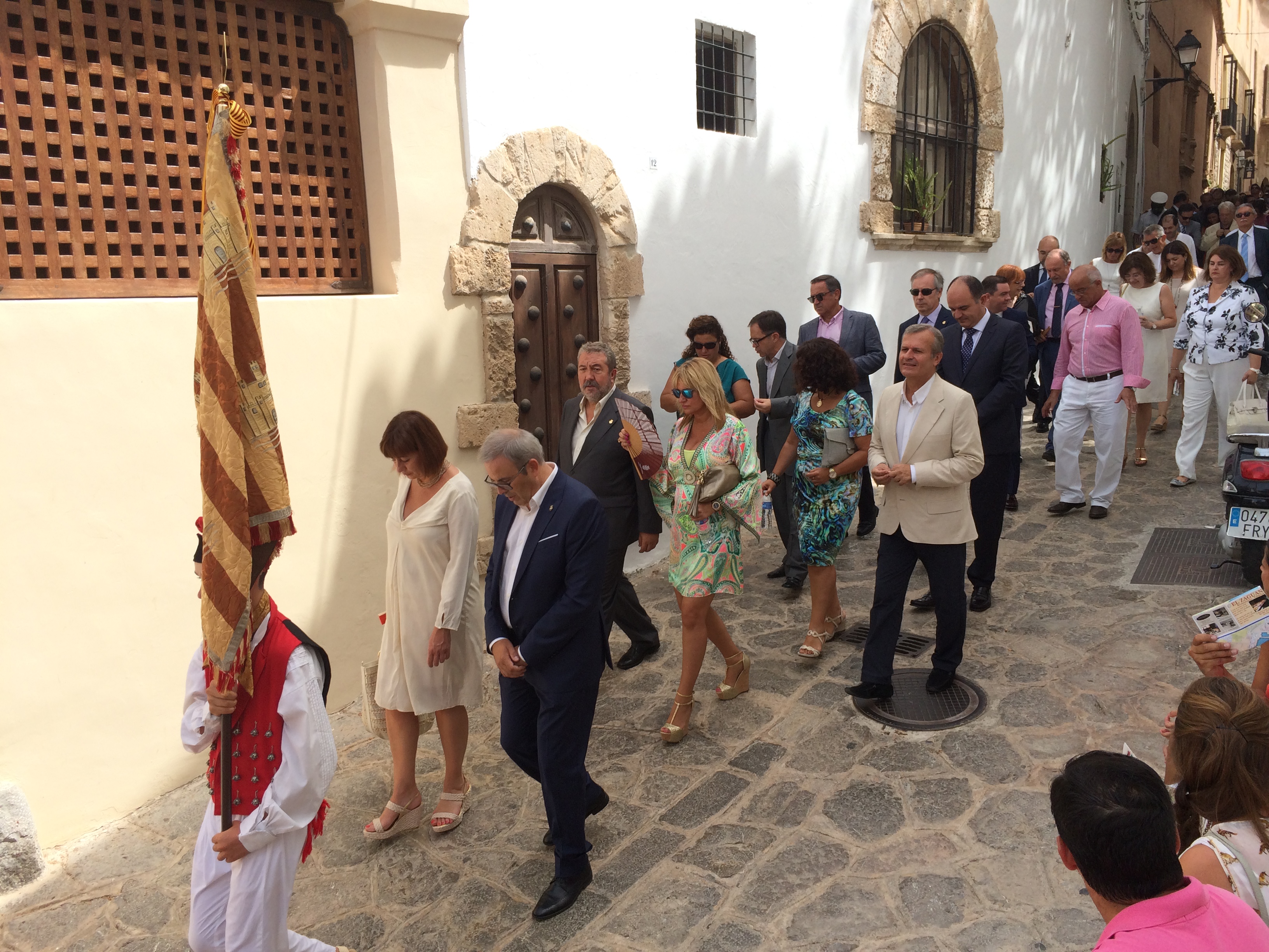 Sólo De Sans había acudido a las puertas de la catedral del grupo de Podem-Guanyem, que ya había comunicado que no iría a la homilía. El resto se unió casi dos horas después, cuando el acto religioso se convirtió en institucional en el mirador del Ayuntamiento de Ibiza, con la ofrenda floral a la estatua del conquistador Guillem de Montgrí.