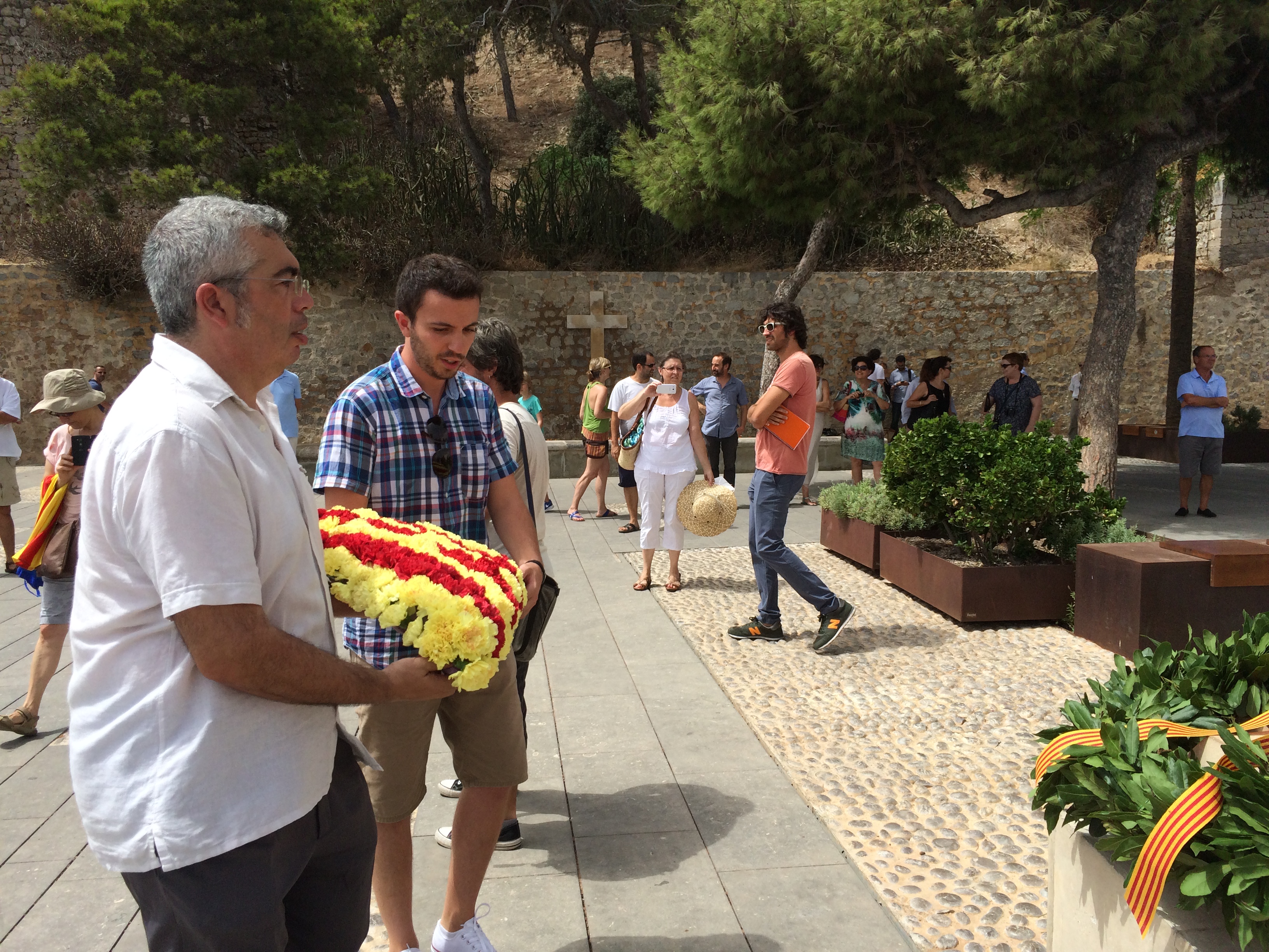 Una vez se retiraron del mirador los políticos y religiosos, Esquerra Republicana hizo su propia ofrenda floral, cubriendo la estatua con la bandera estelada.