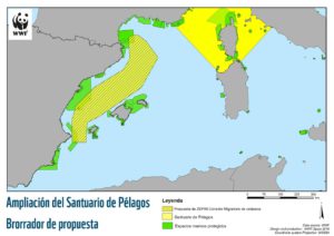 Según José Luis García Varas, de WWF España, incluir las aguas de Baleares y el Corredor de cetáceos a la ampliación del Santuario de Pélagos “permitiría afrontar las amenazas que pesan regionalmente sobre los cetáceos, favoreciendo una mejor conservación de estas especies”. El responsable de WWF añadió: “Si España hiciese suya la propuesta, habría logrado uno de sus compromisos con el Convenio de Diversidad Biológica, alcanzando la meta del 10% de superficie marina protegida de las aguas españolas y contribuyendo de forma significativa a crear la mayor área marina protegida del Mediterráneo junto a Francia, Italia y Mónaco”.
