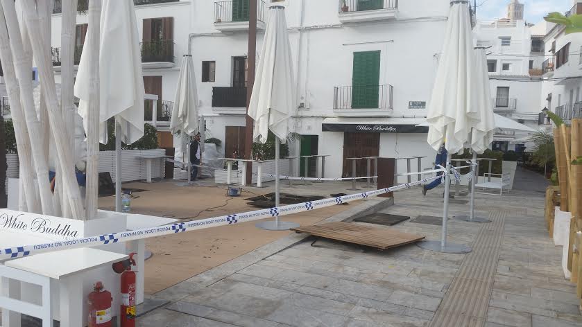 @Noudiari / Un total de 17 personas tuvieron que ser atendidas anoche en el puerto de Ibiza por inhalación leve de humo, entre ellas dos policías portuarios y uno local, tras el incendio originado en una caseta transformador de electricidad soterrada de GESA que se encuentra debajo de la terraza de un bar de copas de la calle Cipriano Garijo, informa el parque insular de Bomberos.