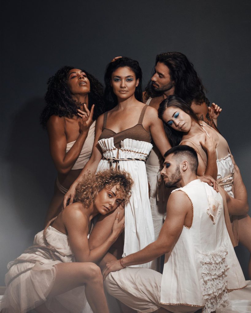 El vestuario es otro de los puntos a favor de esta propuesta artística, ya que camina por el blanco y los tonos crudos que remiten a los orígenes de la moda Adlib, mientras que el maquillaje de tonos azulados remite al mar y al cielo de la isla, sin olvidar los toques dorados de los inigualables atardeceres que destellan sobre la piel de los artistas.