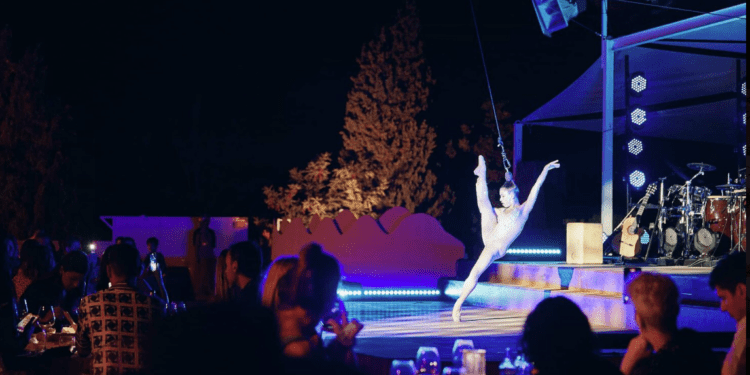 Sobre el escenario vemos una apuesta por el verdadero talento, con artistas que ofrecen un compacto espectáculo en el que no falta de nada: contorsionistas, acróbatas, malabaristas, trapecistas, humoristas, cantantes, bailarines… El aburrimiento no existe en este lugar donde los comensales acaban contagiados del goce de vivir que irradian los artistas dentro y fuera del escenario. Quien entre con una preocupación que le nubla la cabeza pronto verá despejados todos los cielos como despejado está el cielo abierto sobre Benimussa.
