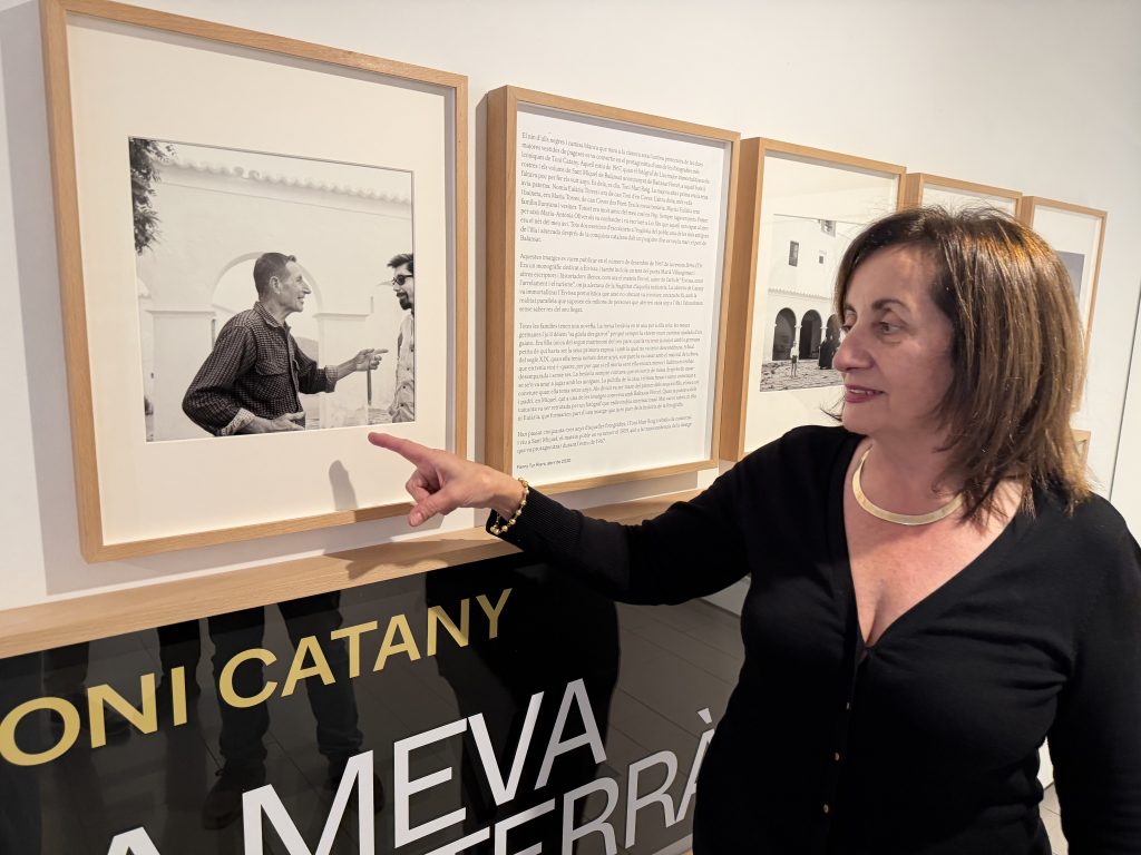 Joan F. Ribas, organizador, y Fanny Tur, historiadora que ha investigado la imagen, junto a las fotografías captadas por Toni Catany en Sant Miquel en 1967. Foto L. F. A.