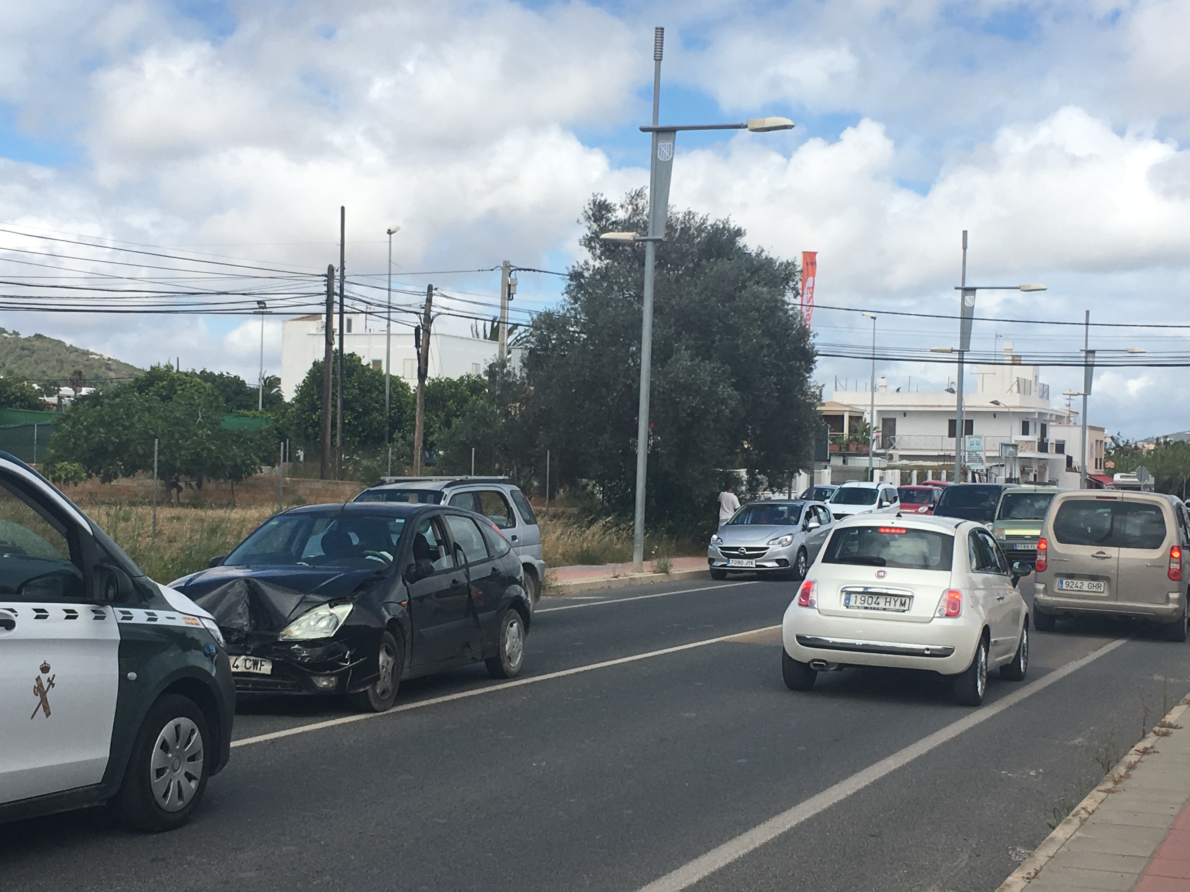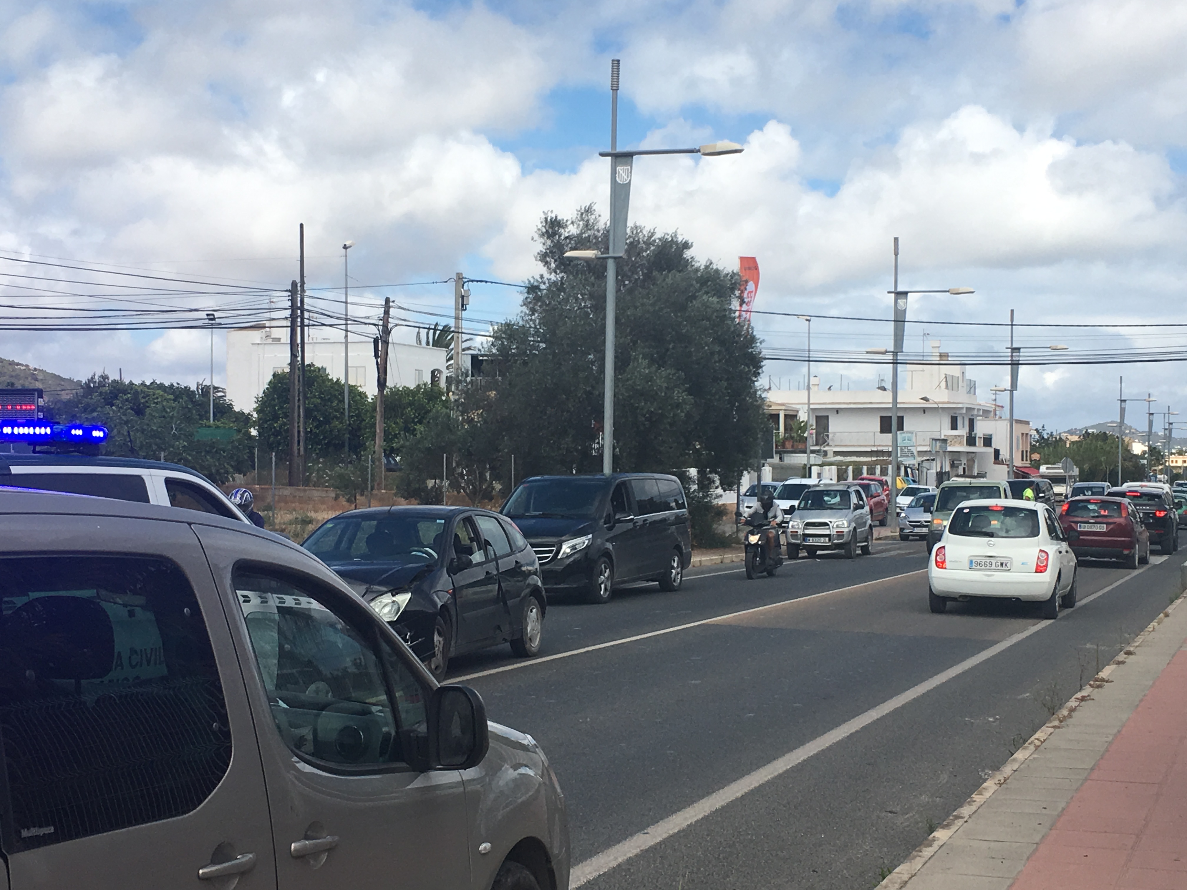 El siniestro ha tenido lugar entre la rotonda del Mercadona (Can Burgos) y la de Can Bellotera, a la altura del gimnasio Fraile. Afortunadamente, los ocupantes de los vehículos han resultado aparentemente ilesos. El accidente se ha producido cuando uno de los dos vehículos ha embestido al otro por detrás, quedando separados por varios metros de distancias en mitad de la carretera. La Guardia Civil de tráfico ha derivado el caso a la policía municipal de Sant Josep para determinar las causas que han provocado el siniestro.
