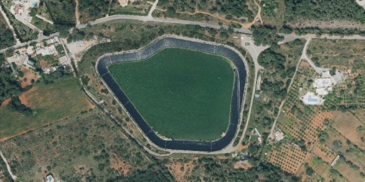 Tiene una capacidad de 200.000 metros cúbicos de agua procedentes de la depuradora de Santa Eulària.