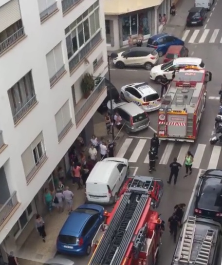@Noudiari / Los vecinos de la calle Vicent Serra i Orvay número 12, junto a la tienda de trofeos de Cas Datilet, han vivido esta mañana de viernes momentos de terror cuando la presencia de humo en la escalera del bloque les ha alertado.