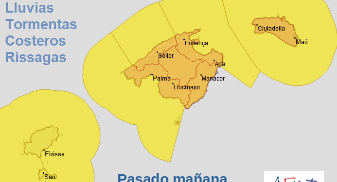 En ese mismo horario podrían registrarse tormentas eléctricas en Ibiza y Formentera.