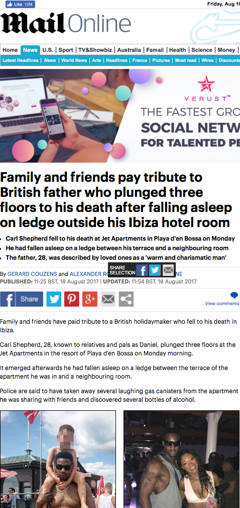 Según indica la publicación británica, ese domingo por la noche se sentía cansado y decidió quedarse en los apartamentos.»Se sentó en la amplia plataforma que conecta los balcones de los apartamentos y que no tiene barandillas ni medidas de seguridad. Trágicamente, parece que se durmió y rodó, cayendo tres pisos y golpeando contra el suelo, donde murió», señala el periódico, citando a uno de sus amigos.