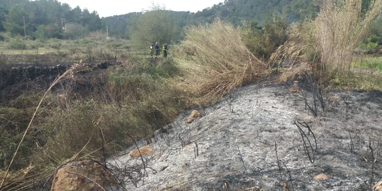 Apagan un pequeño incendio en un cañaveral de Sant Miquel