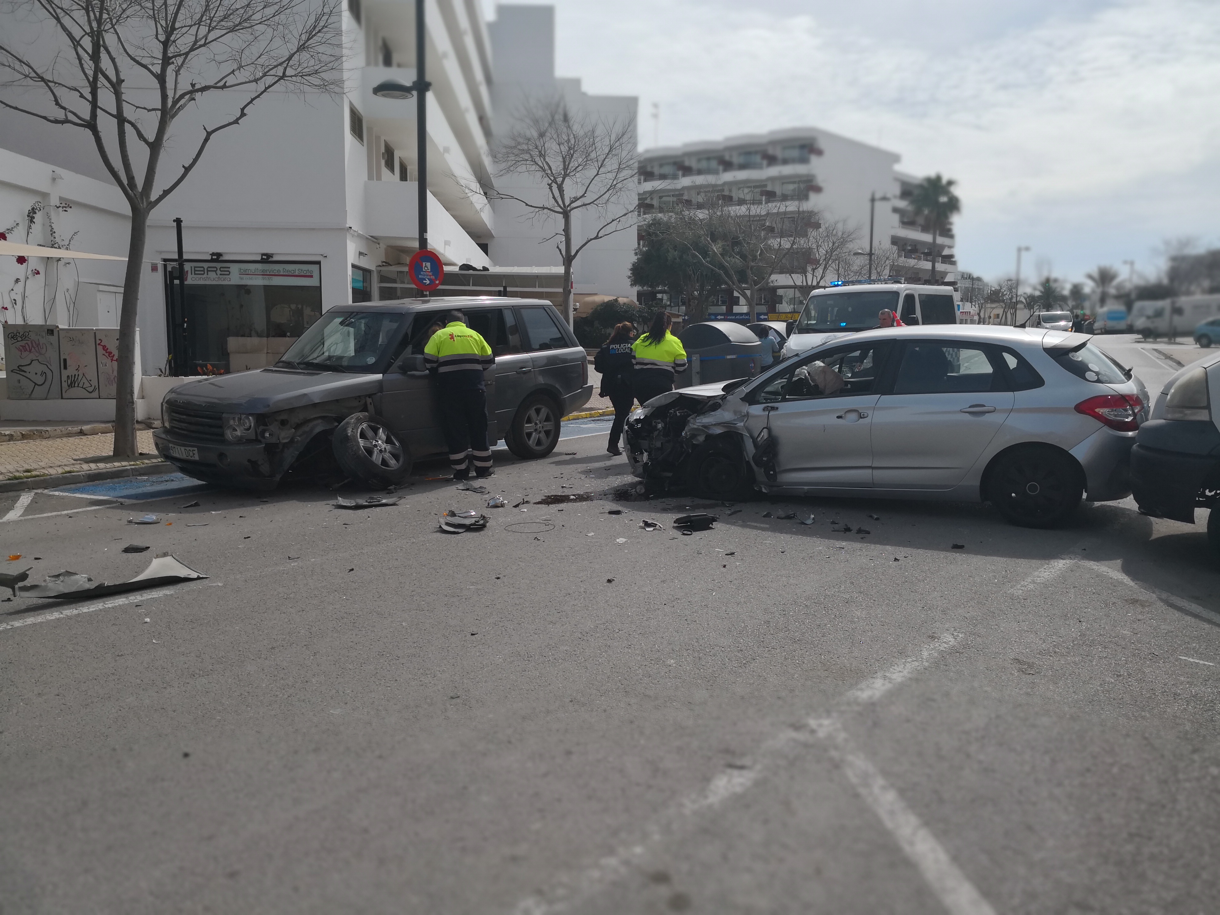 Aparatoso accidente entre dos coches en la avenida de Pere Matutes Noguera de Vila