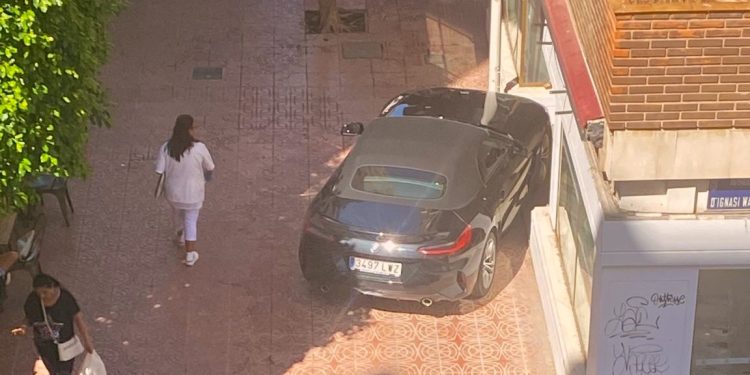 El conductor de un descapotable de alta gama no ha dudado en aparcar esta mañana su vehículo en el pasaje peatonal Médico Antonio Sierra de la ciudad de Ibiza, una vía que une la Avenida Ignaci Wallis con la calle Madrid y donde no solo no se puede estacionar, sino que está prohibida la circulación al tratarse de un paso peatonal con varias terrazas de diferentes negocios de hostelería a ambos lados.