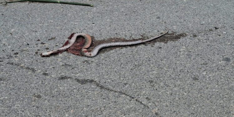 Una serpiente de alrededor de 1,5 metros de longitud ha aparecido esta mañana atropellada en el Camí de Cap Negret de Sant Antoni, en las inmediaciones de Cala Gració y Cala Gracioneta.