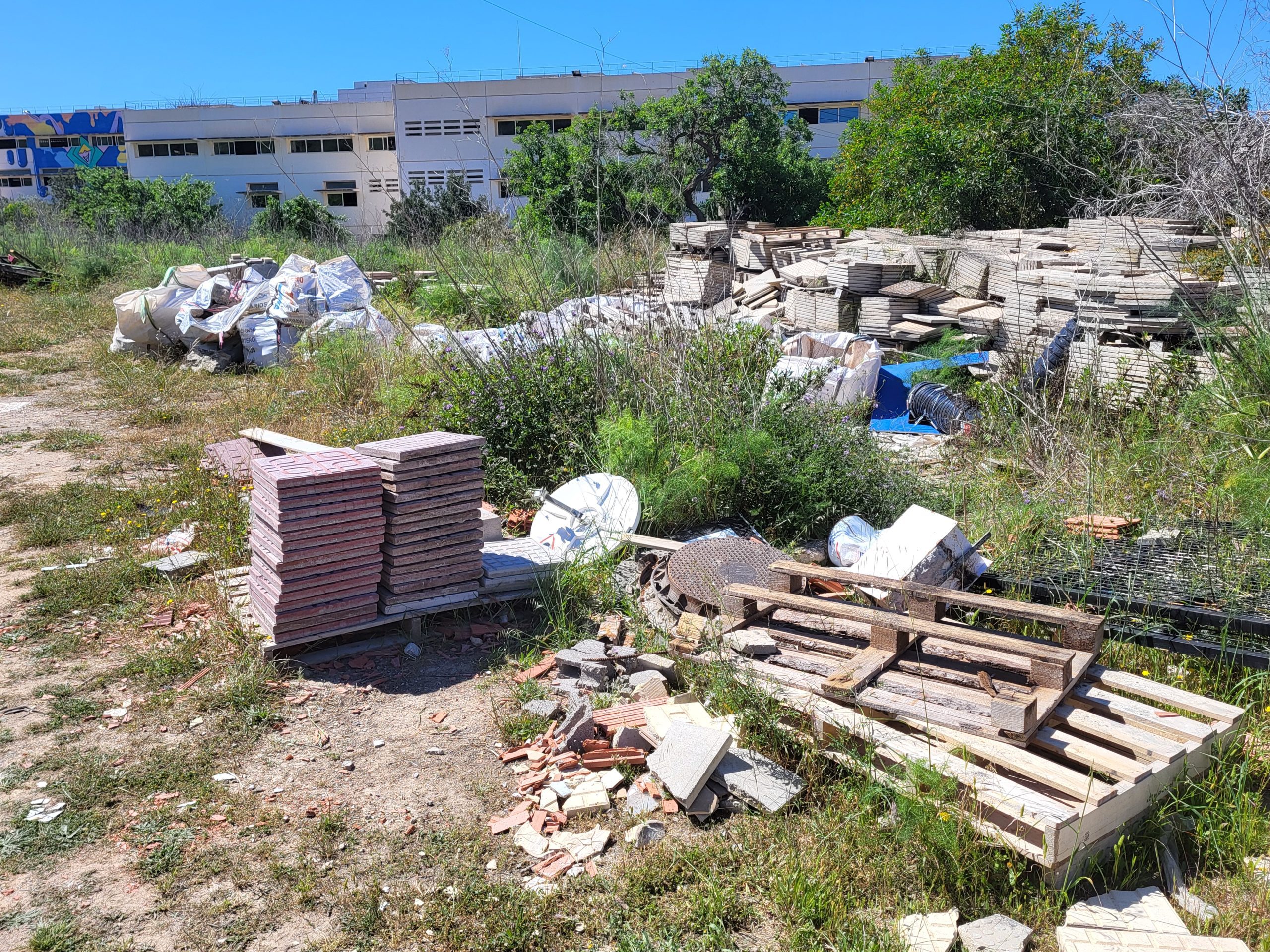 La formación política señala que el espacio, ubicado entre el campo de fútbol y el IES Sant Agustí —y a escasos metros de la escoleta Es Vedranell y el CEIP Es Vedrà—, se utiliza aparentemente para el acopio de materiales de obras municipales. Sin embargo, la falta de orden y la ausencia de un cerramiento perimetral han derivado en una acumulación descontrolada de residuos, restos vegetales, metales, piedras y materiales diversos a la vista de todos.