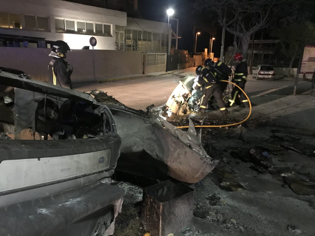 Arden tres contenedores de basura en Platja d’en Bossa