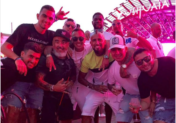 @Noudiari / Arturo Vidal y otros compañeros suyos en la selección de Chile han coincidido este verano en Ibiza con el también jugador del FC Barcelona Samuel Umtiti, como se aprecia en la imagen que han subido en las redes.