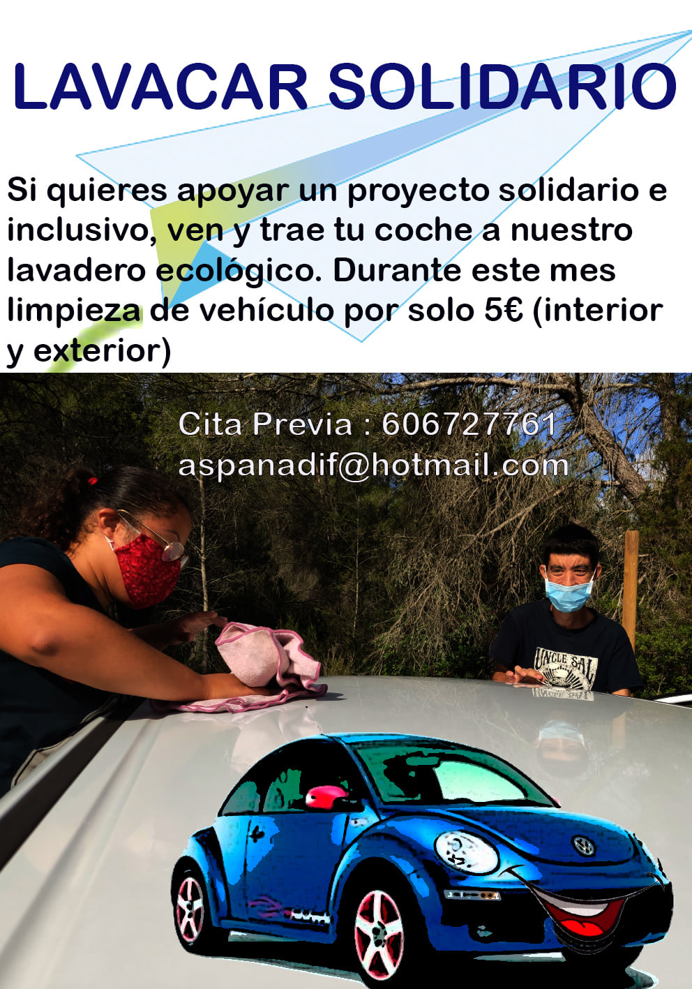La Asociación de padres de niños y adolescentes discapacitados de Ibiza y Formentera (Aspanadif) continúa con sus talleres y actividades como el proyecto ‘Lavacar Solidario’. Se trata de un lavadero ecológico de automóviles que prescinde del uso de productos químicos que no cumplen con las normativas medio-ambientales. Todo el que quiera puede acercarse y por 5 euros te limpian el coche por dentro y por fuera.