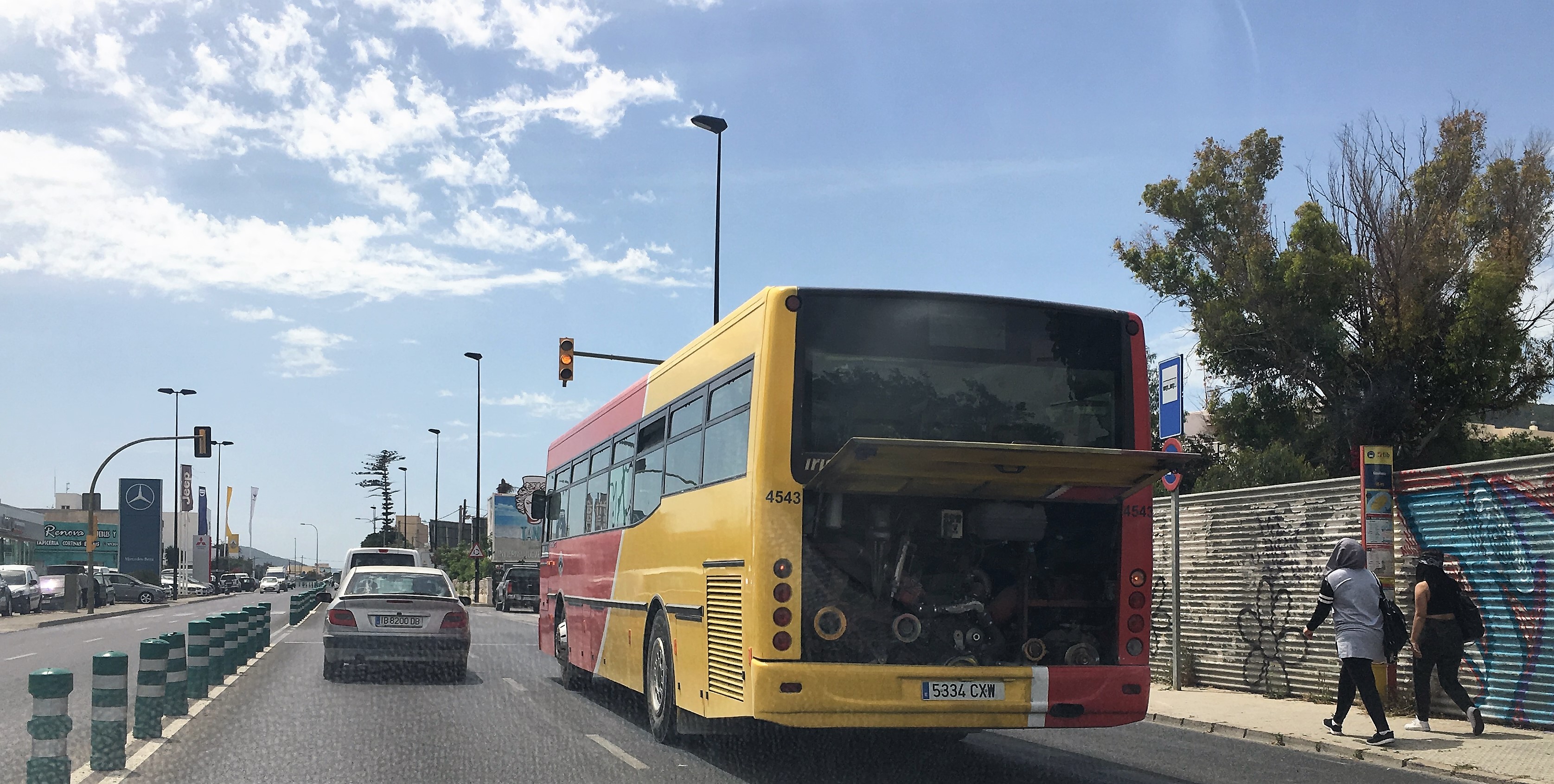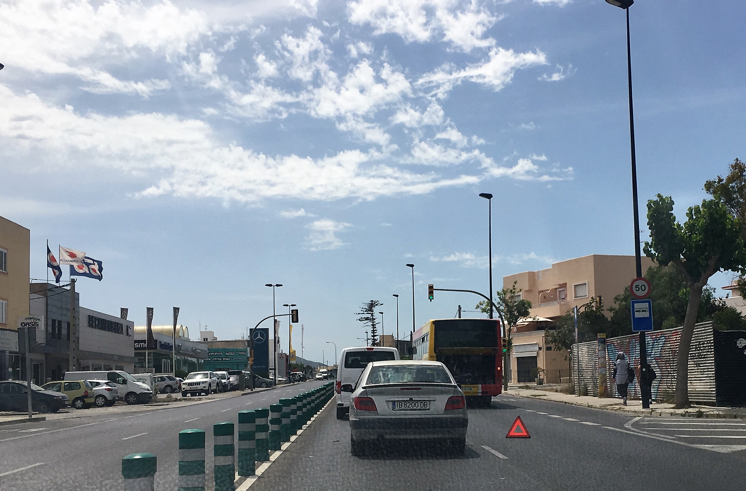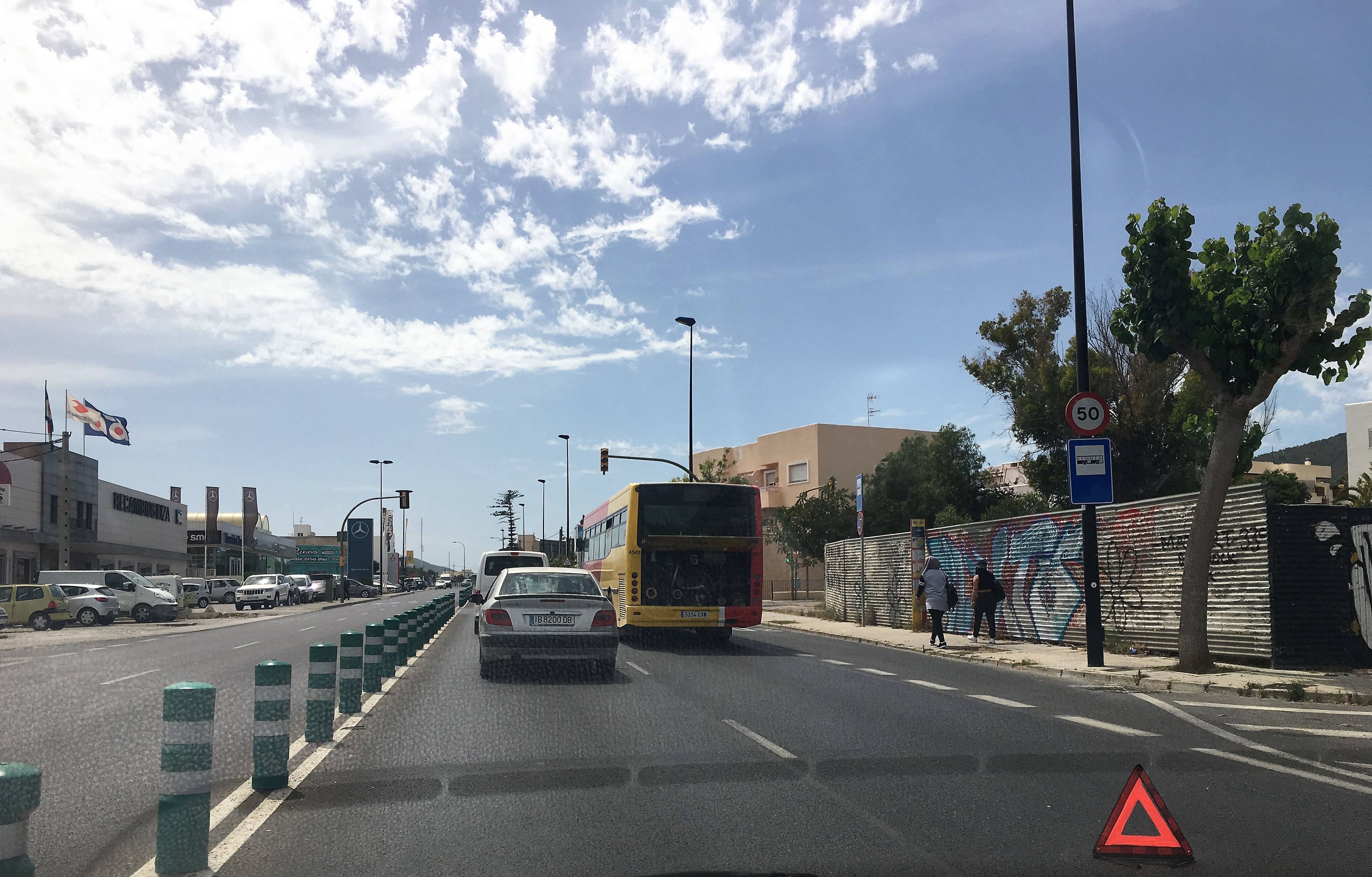 @Natalia Cárdenas / Un autobús de línea que cubre la ruta Ibiza – Sant Jordi – Ses Salines ha sufrido una avería alrededor de las tres de la tarde ralentizando el tráfico. El servicio de la Línea 11 de Ibizabus se ha visto obligado a detenerse en mitad de la avenida de Sant Josep, a la altura de Recambios Ibiza, en dirección a Sant Jordi.