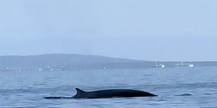En un principio pensaron que se trataba de un delfín, pero en vista de sus grandes dimensiones descartaron rápidamente esta posibilidad. Al llegar a tierra, mandaron las imágenes captadas desde el barco a un biólogo marino que les confirmó que lo que habían visto era una un rorcual común, también conocido como ballena de aleta.