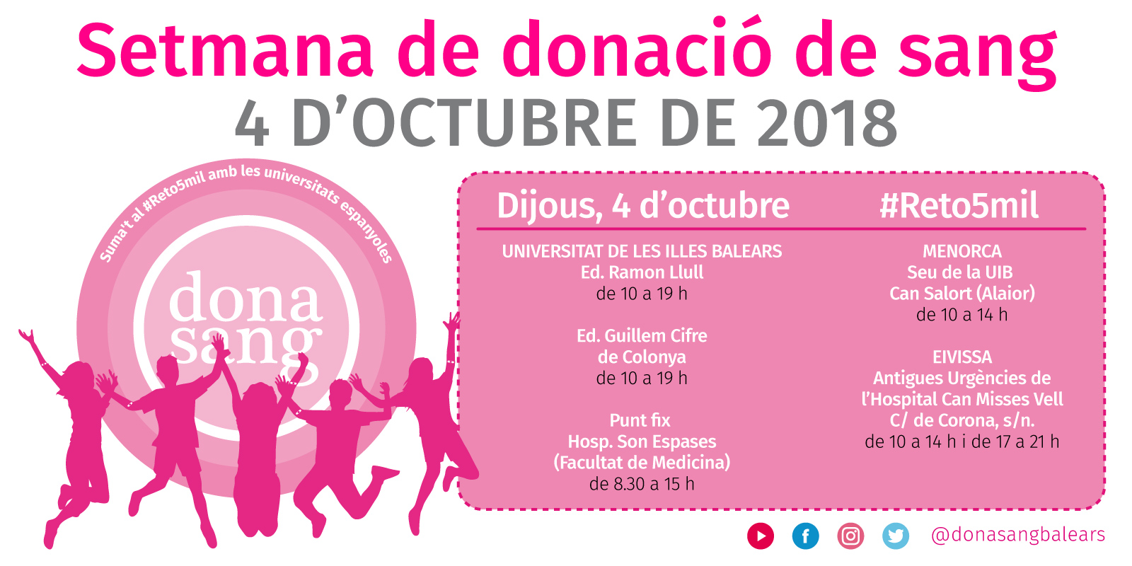 @Noudiari / Las Illes Balears participarán el 4 de octubre en la campaña de donación de sangre #Reto5mil, organizada a nivel nacional por la Red Española de Universidades Saludables (REUS).