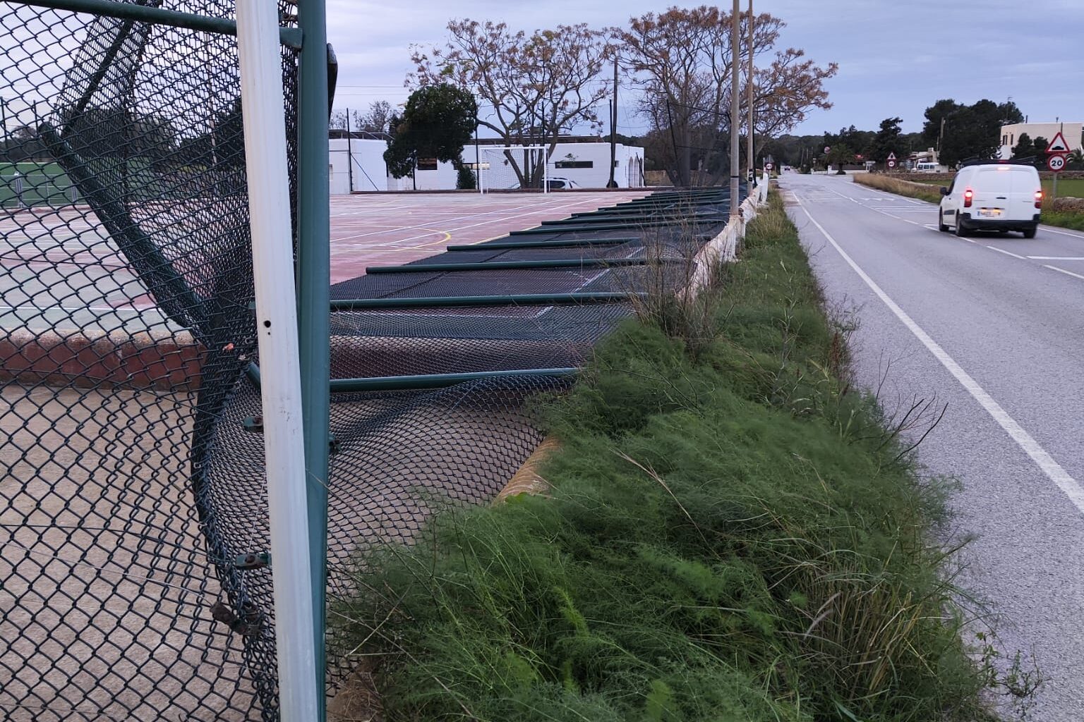 El fuerte viento ha provocado también la caída de la valla perimetral de las pistas deportivas de Es Cap, motivo por el cuál las instalaciones permanecerán cerradas temporalmente, informa el Consell de Formentera, hasta que se realicen las reparaciones necesarias para garantizar la seguridad de las personas usuarias.