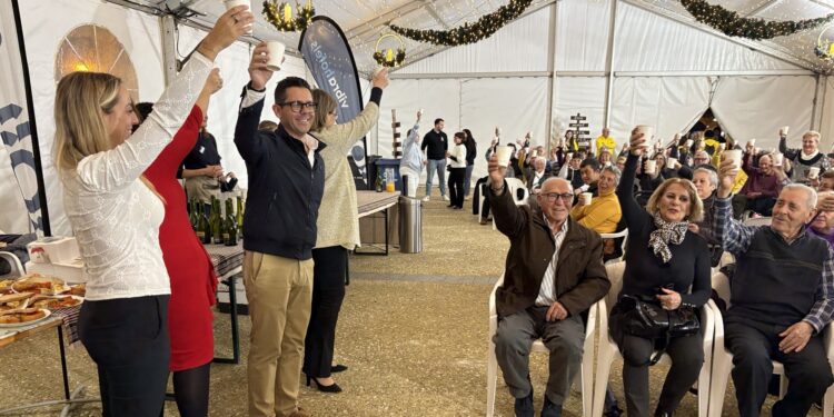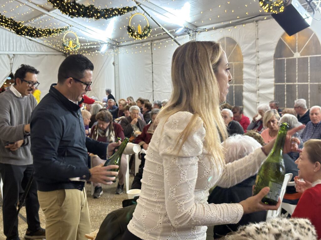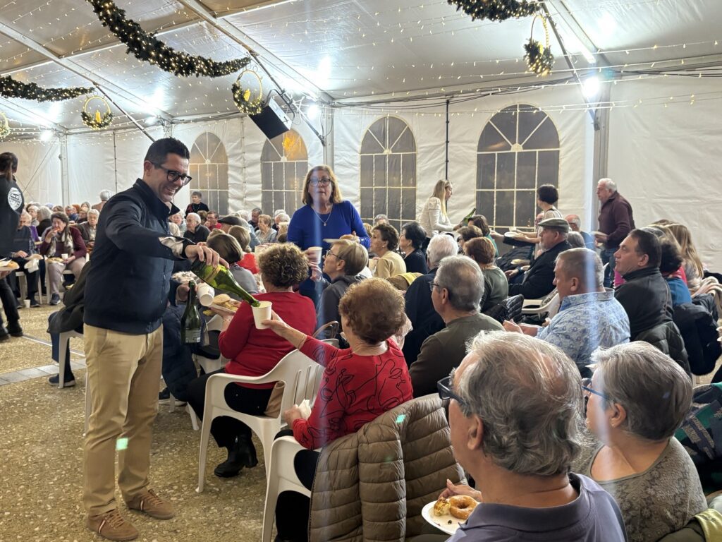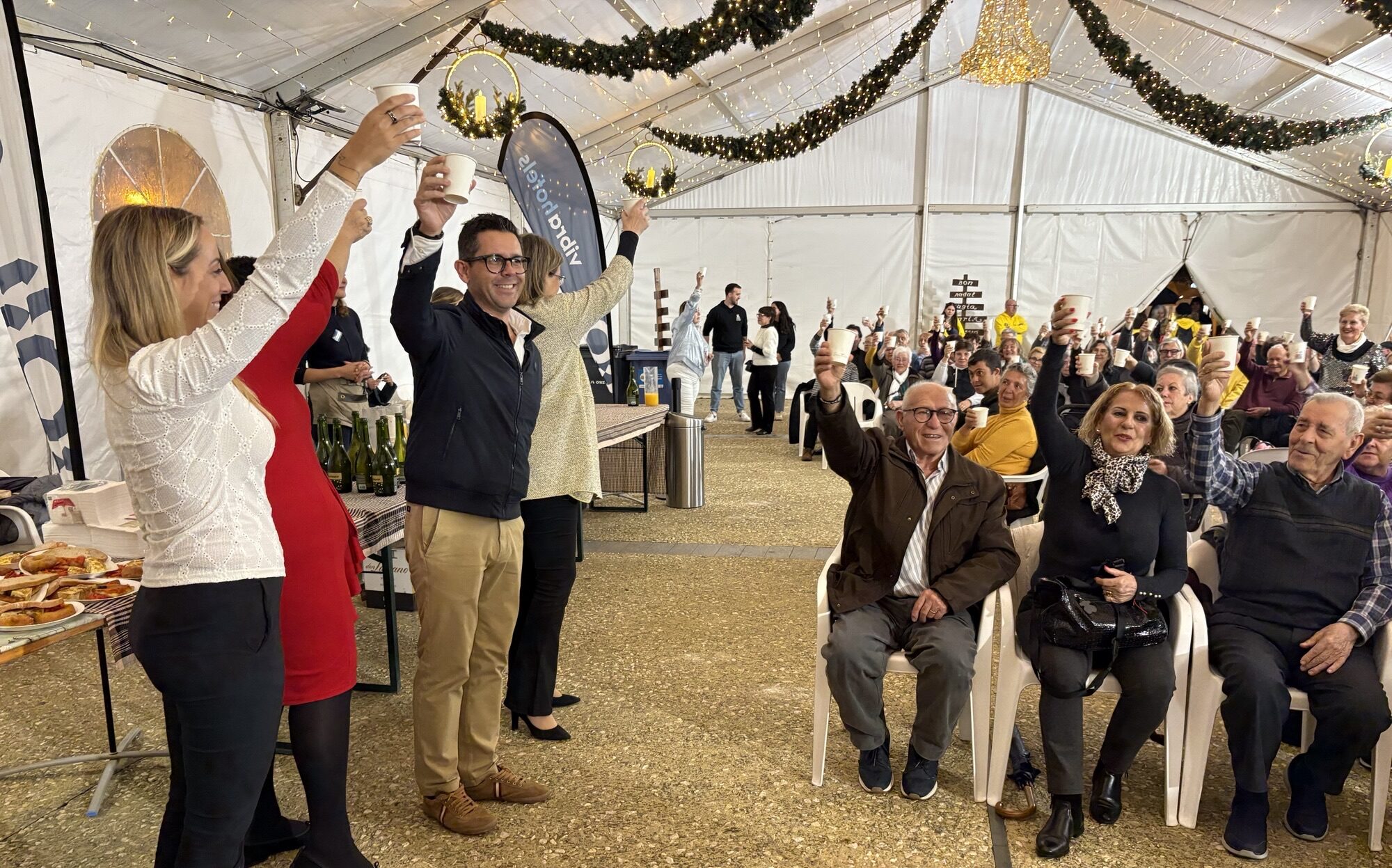 La carpa navideña instalada en Vara de Rey acogió ayer el brindis de las personas socias del Club de Jubilados del Esplai de Can Ventosa, un encuentro que ha reunido a cerca de 300 personas mayores de la ciudad.