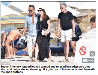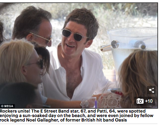 Sin embargo, The Boss y su esposa no estuvieron solos en sus vacaciones ibicencas. El miércoles, la leyenda del rock navegó por aguas pitiusas junto al diseñador Calvin Klein, y se encontró en Formentera con el cantante y músico británico, Noel Gallagher, de Oasis, con quien compartió mesa en un restaurante de playa de la pirtiusa menor.