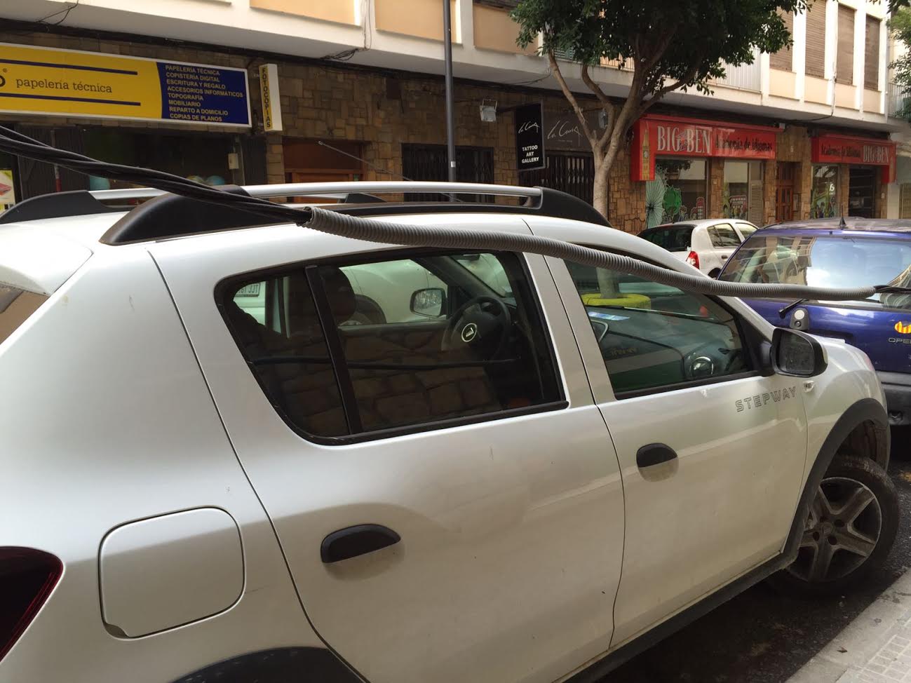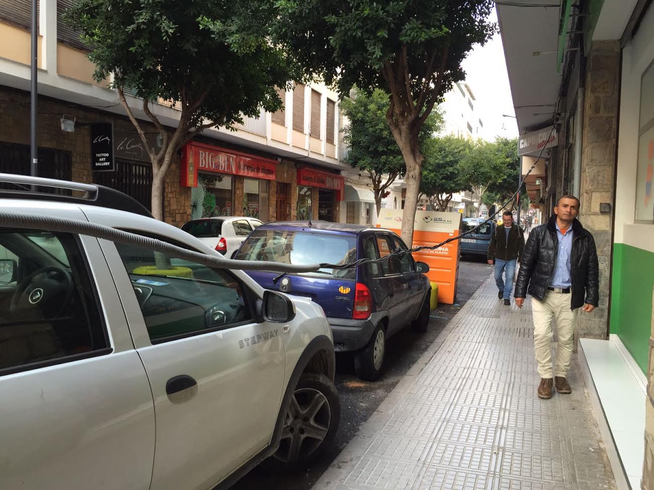@Noudiari / Un cable del tendido eléctrico de Vía Púnica se ha desplomado esta mañana sobre la acera a la altura del número 12 de esta calle del municipio de Vila. Por fortuna, no ha caído sobre ninguna persona y no ha causado daños. El incidente ha dejado al descubierto la precaria situación del tendido, sujeto de farola en farola con bridas de plástico a la vez que pasa a través de los árboles. Una chapuza en toda regla.