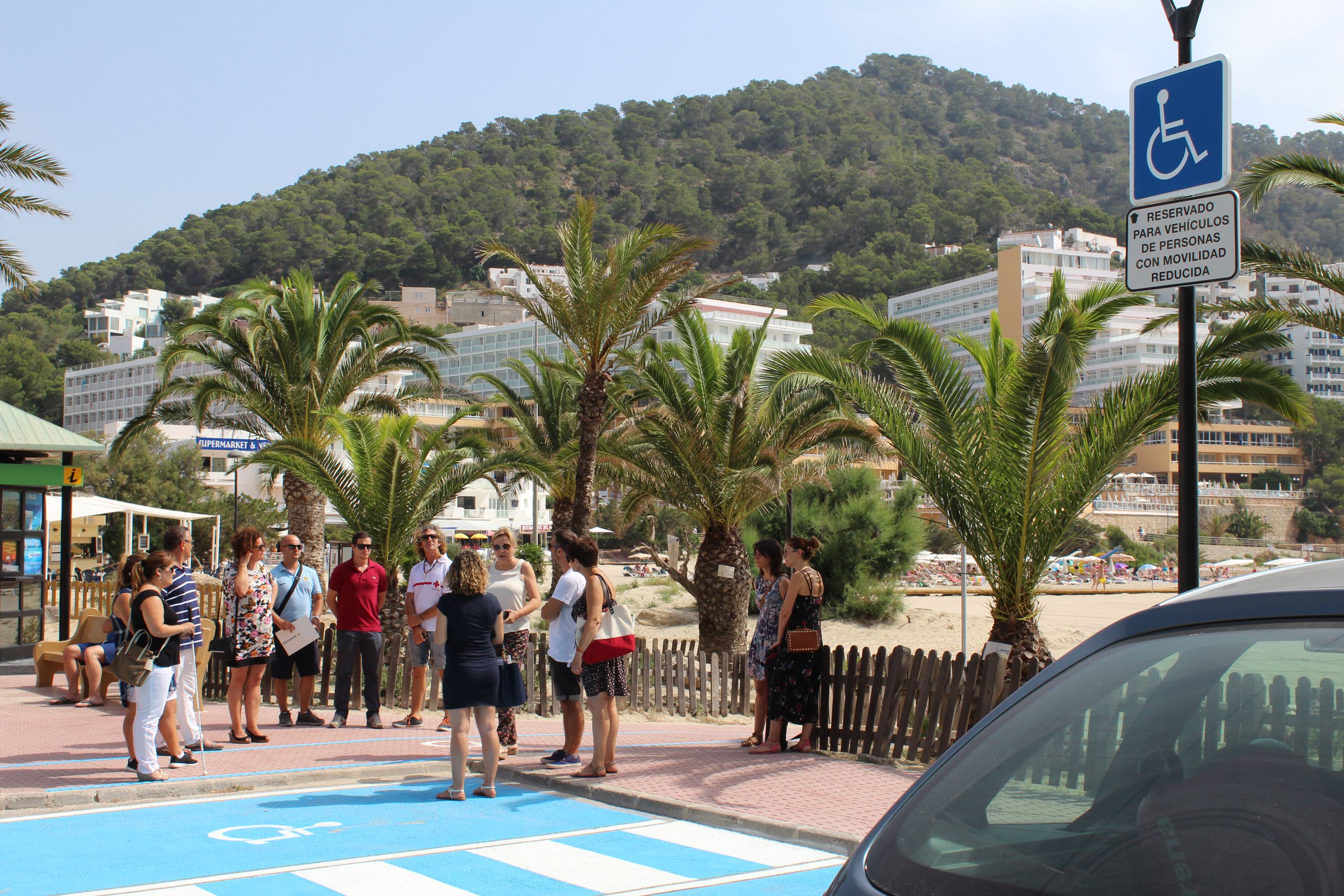 La concejala de Litoral y Playas, Antònia Picó, ha presentado esta mañana las instalaciones a representantes de diferentes entidades que trabajan con personas con movilidad reducida o alguna discapacidad (Once, Apneef, Adima, Magna Pityusa y sa Colometa) y que ya usan la zona de baño de Santa Eulària de forma habitual y pueden informar a sus usuarios de la existencia y servicios de estas zonas.
