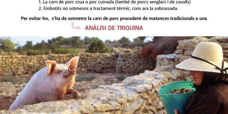 La triquinosi és una malaltia parasitària que es pot transmetre als humans a través de carn de porc crua o poc cuinada (també de porcs senglars i de cavalls) o embotits no sotmesos a tractament tèrmic, com ara la sobrassada. Per evitar la triquina s’ha de sotmetre la carn de porc procedent de matances tradicionals a una anàlisi de triquina.