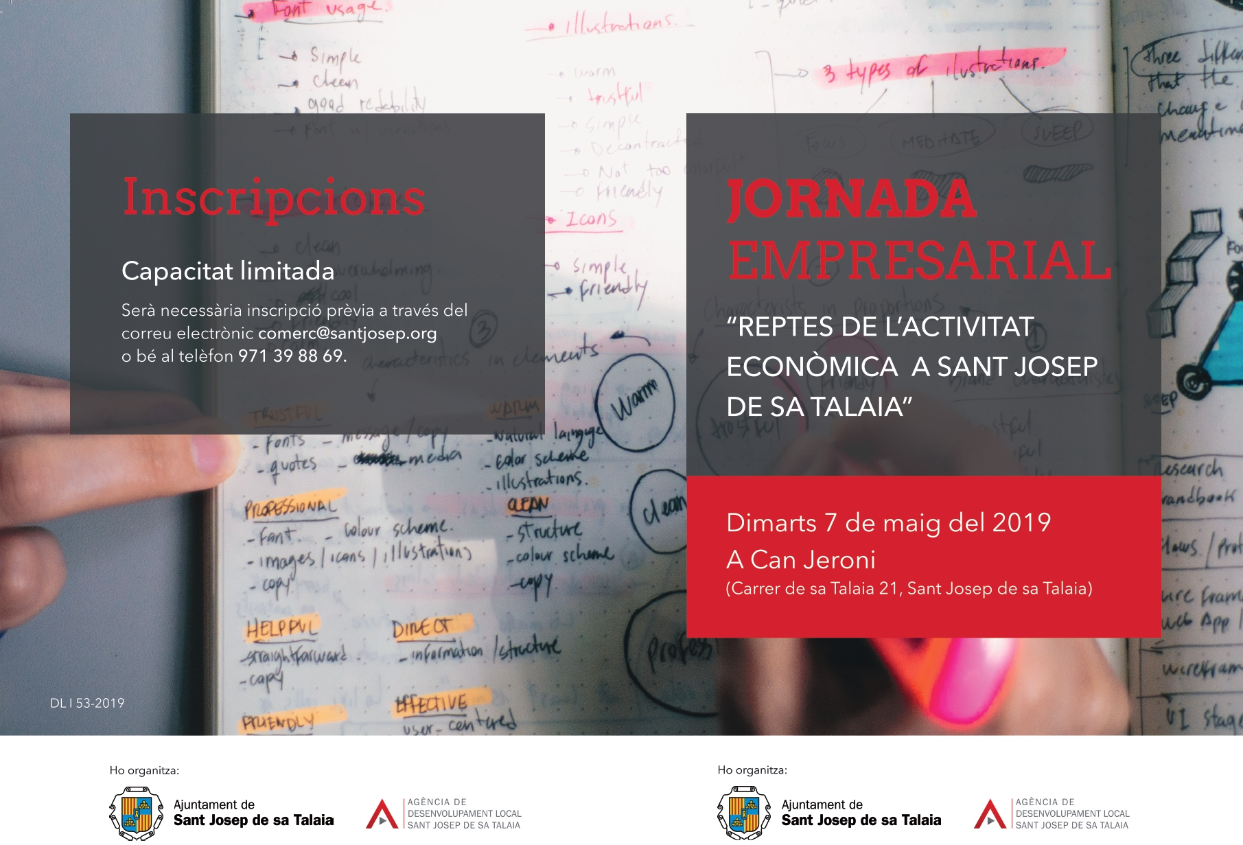 @Noudiari / El pròxim dia 7 de maig, Can Jeroni acollirà la jornada “Reptes de l’activitat econòmica a Sant Josep de sa Talaia”, organitzada per l’àrea de comerç de l’Agència de Desenvolupament Local de l’Ajuntament de Sant Josep de sa Talaia.