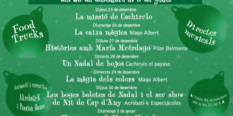 – Dijous, 30 de desembre: Les boges boletes de Nadal i el seu show de Nit de Cap d’Any d’Acobati-k Espectacles.