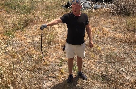 Cada vez están más cerca de los núcleos urbanos. Dean Gallagher, voluntario de Amics de la Terra y apodado cariñosamente como el ‘cazaserpientes’, ha capturado esta tarde un ejemplar de culebra de herradura en un solar de es Viver, lo que confirma que esta especie invasora sigue ganando terreno al mismo tiempo que devora y diezma la población de lagartijas de Ibiza.