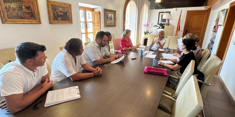 La alcaldesa de Santa Eulària, Carmen Ferrer; la concejala de Bienestar Social, Antonia Picó, y personal técnico del departamento de Servicios Sociales y un técnico de servicios jurídicos se han reunido esta mañana en el Ayuntamiento con el representante legal y los portavoces de un grupo de personas desalojadas del camping ilegal de Can Rova, desahuciados el pasado 31 de julio por mandato judicial para resolver el desacuerdo entre los seis propietarios de la finca.