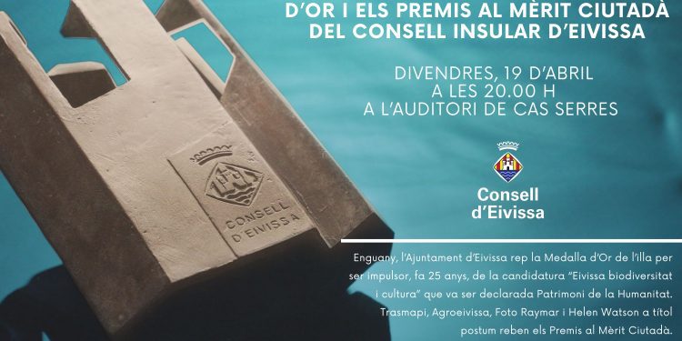 L’Auditori de Cas Serres acull aquest divendres 19 d’abril, a les 20 hores, l’acte d’entrega de la Medalla d’Or de l’illa d’Eivissa i els Premis al Mèrit Ciutadà atorgats pel Consell Insular d’Eivissa.