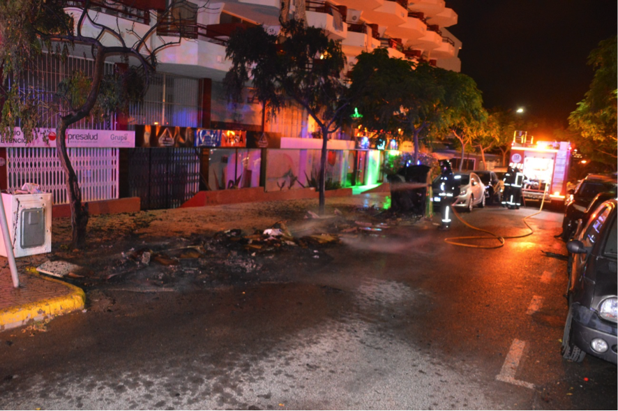 Por otro lado, cuatro patrullas de la Policía Local de Ibiza tuvieron que intervenir la madrugada del sábado como consecuencia de un incendio originado en los contenedores situados en uno de los laterales del edificio de apartamentos Lido, en ses Figueretes.