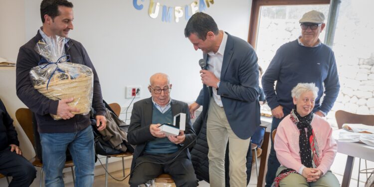 El alcalde de Sant Antoni de Portmany, Marcos Serra, y el concejal Miguel Ángel Costa asistieron el pasado sábado a la celebración del 100 aniversario de Toni Bonet Costa, conocido como Toni de Cas Gall, vecino de Santa Agnès de Corona.