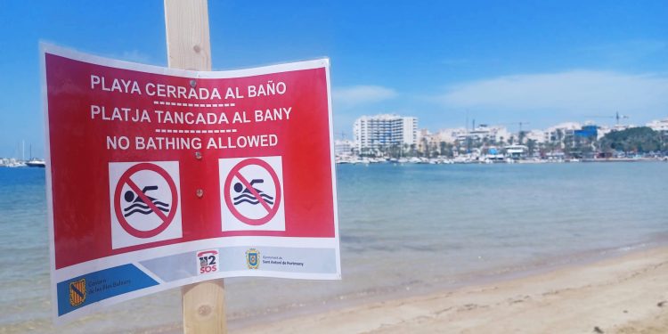 El Ayuntamiento de Sant Antoni ha cerrado hoy el primer tramo de la playa de s’Arenal tras informar la Conselleria de Salut que la última muestra tomada supera los valores permitidos en uno de los indicadores de calidad del agua de baño por presencia de bacteria fecal E. Coli.